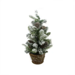 2′ Potted Flocked Pine Artificial Christmas Tree Slim With Wicker Base – Unlit – 31461957