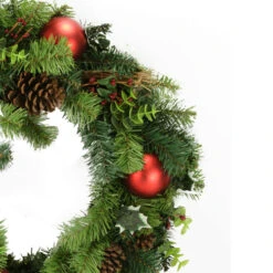 Green And Red Pine Cone And Eucalyptus Artificial Christmas Wreath – 24-Inch, Unlit