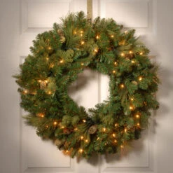 Christmas Central Pre-lit Carolina Pine Artificial Christmas Wreath, 30-Inch, Clear Lights