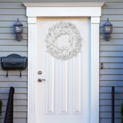 15″ Cream White And Green Contemporary Artificial Christmas Wreath In Planter Pot – Unlit