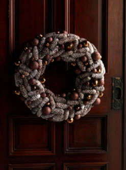 Golden Treasures Glittered Berries And Pine Cone Artificial Christmas Wreath – 24-Inch, Unlit