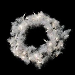 Vickerman 24″ Pre-Lit Sparkle White Spruce Christmas Wreath – Pure White LED Lights