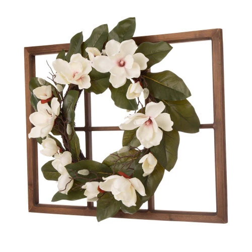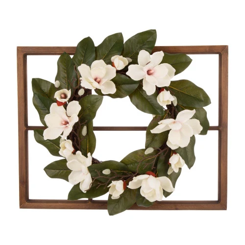 - Green And White Magnolia Floral Artificial Christmas Wreath