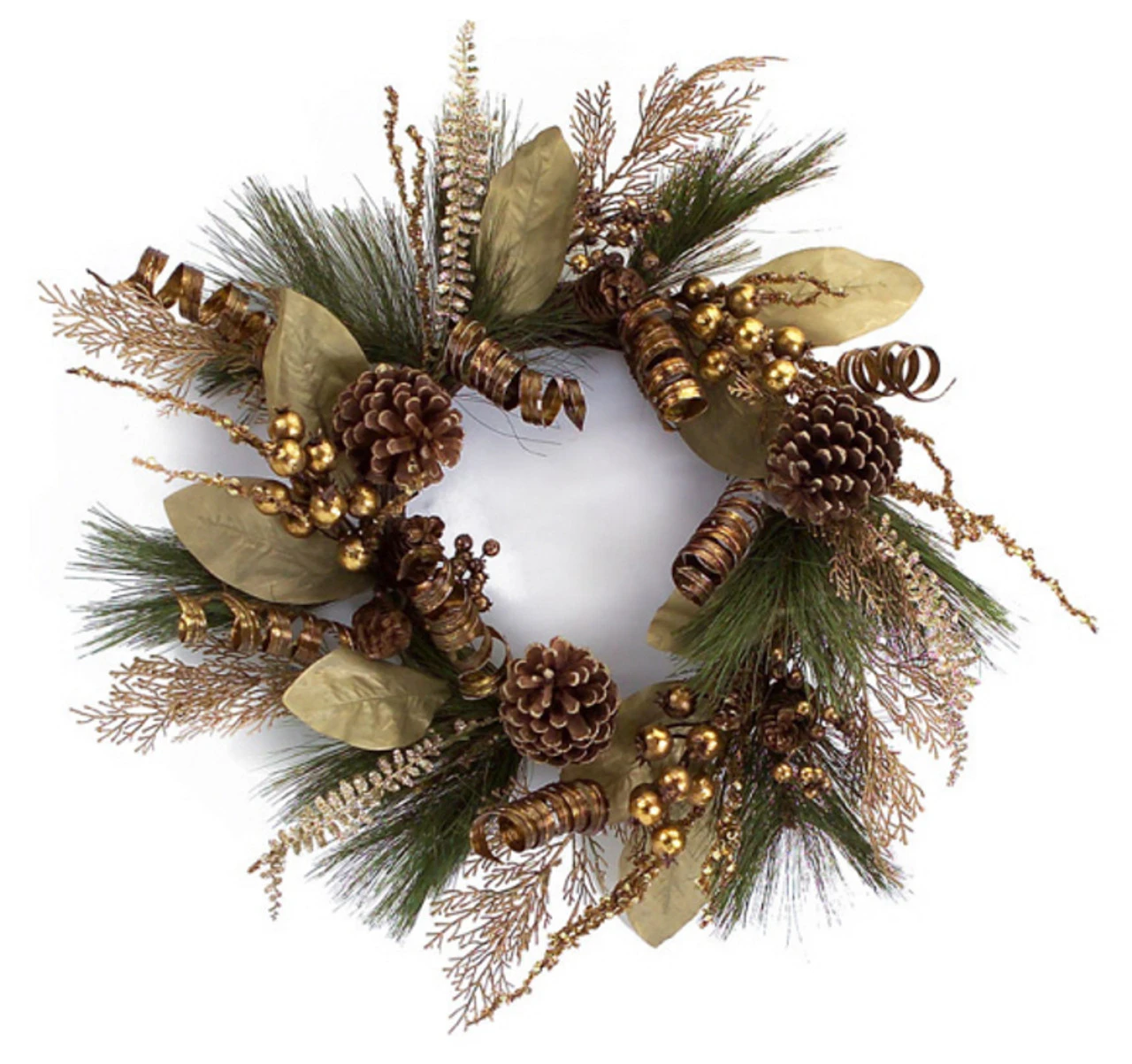 - Brown And Gold Pine Cone Artificial Christmas Wreath