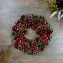 Dimensions: 2″ high x 12″ diameter (measured from outermost edge to outermost edge across the wreath)