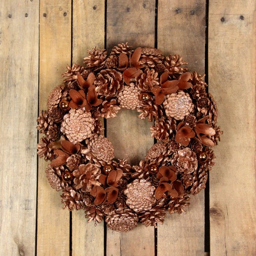 - Featuring Glittered Cones And Autumn Foliage In A Rose Gold Color
