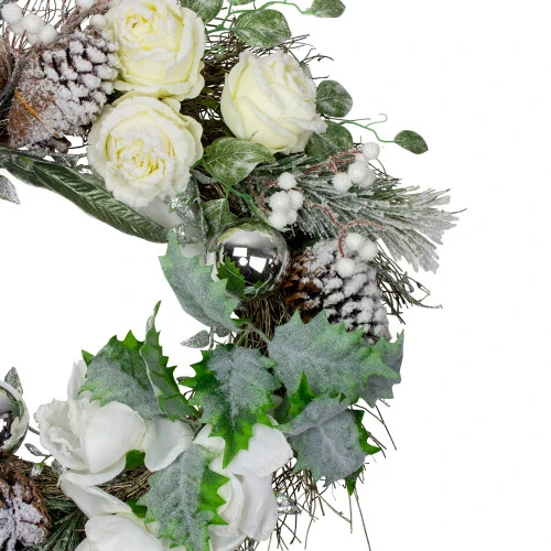 Green, white and silver artificial Christmas wreath