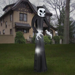 7′ White And Black Giant Wicked Reaper Inflatable Outdoor Halloween Decor