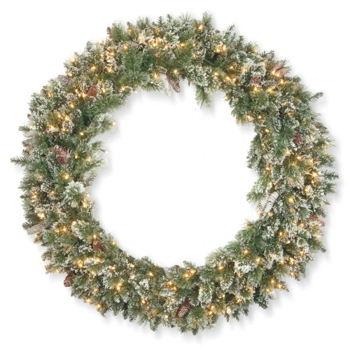 - Lighted Glittery Bristle Pine Christmas Wreath