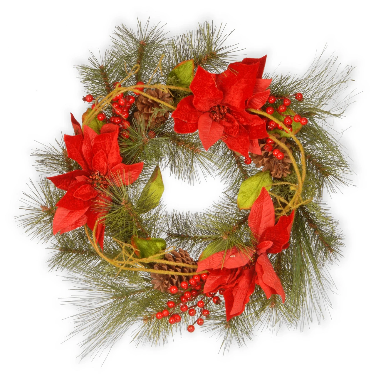 - Unlit Poinsettia Artificial Christmas Wreath