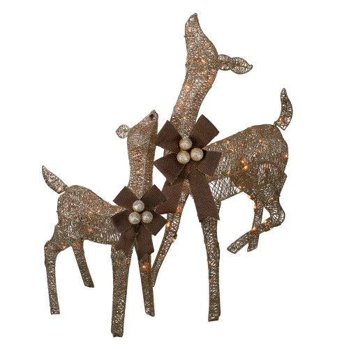 - Brown Lighted Mesh Standing Fawn And Doe Deer