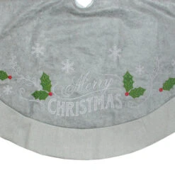 48″ Gray And Green ‘Merry CHRISTMAS’ Mottled Tree Skirt With Herringbone Bordered Trim