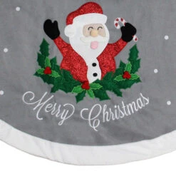 48″ Gray And White Traditional Happy Santa Christmas Tree Skirt